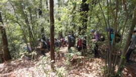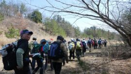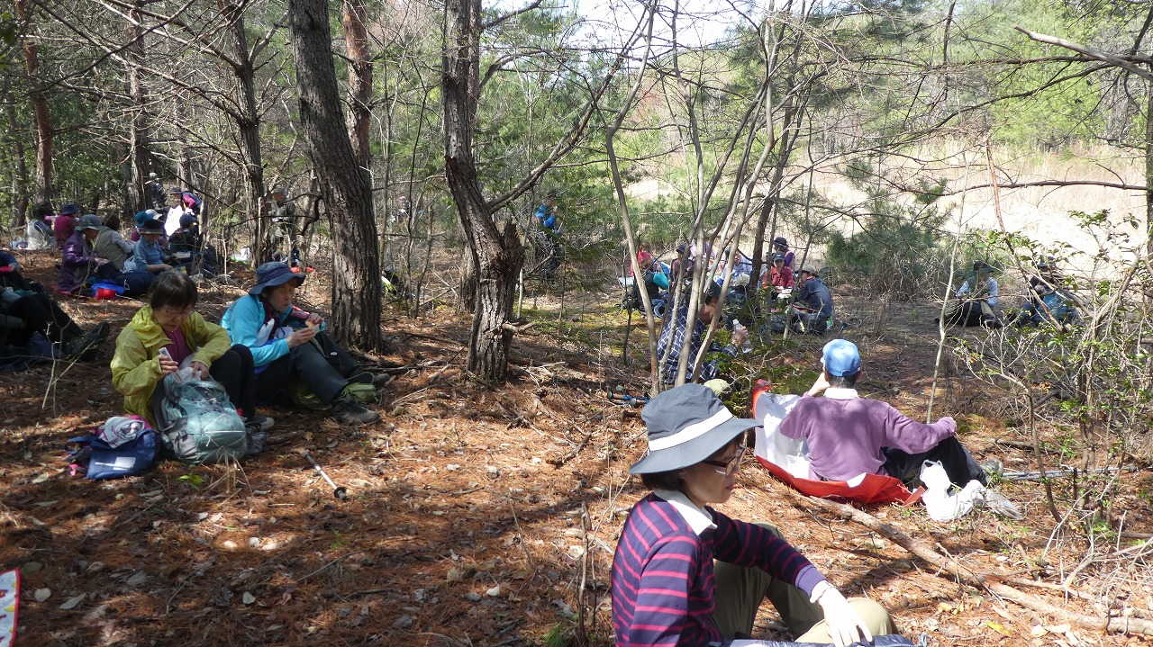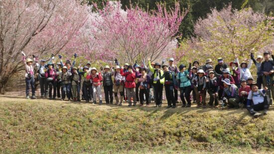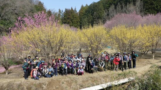 山川Lコメント:去年知った小川町の桃源郷を訪れるべく山を絡めて設定してみました。父の代に棚田だった地の後を継いだ息子さんが花木を植えて現在の姿にされたそうです。いろいろな木々の花とその色の多彩さに驚きました。いく通りかのピンク、黄、白との重なりです。心地よいいつまででもいられる場所となっていました。大勢の方のご参加と小さなハプニングありのスタートでしたが、山も足並みが揃い無事にクリアできました。皆様のご協力を頂きながら今日も和やかな一日です。 どうもありがとうございました。