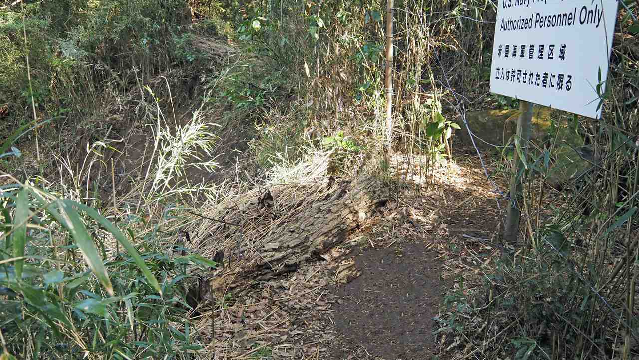 鎌倉市と逗子市池子米軍住宅の境界道は、鉄線が張られており、一部石塀で囲まれていた。
