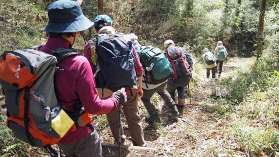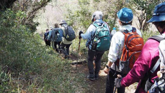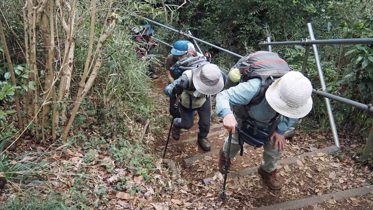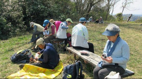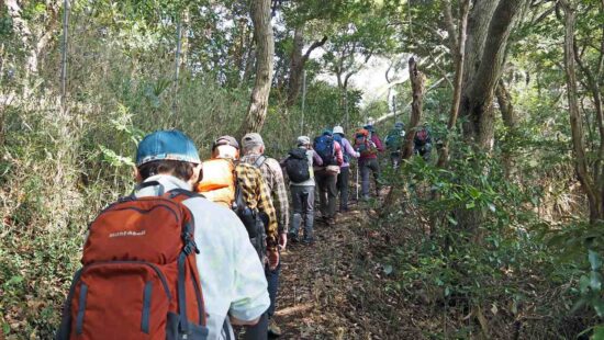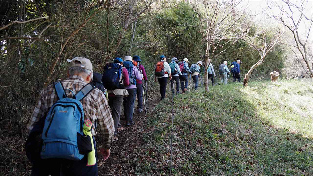 朝比奈バス停から朝夷奈切通しを10分程歩く。左折して石段を登ると熊野神社に到着。裏山から十二所果樹園展望台へ向かう。ここで、ランチタイム。富士山、伊豆方面、丹沢山系が見事に見える絶景スポットです。反対側からは房総半島を眺望することができる。しかし、霞んで、はっきり見えなかった。鎌倉市と逗子市池子の米軍住宅の境界道(鉄線・石塀で仕切られている)の「逗子やまみの道」は、下見(原稿作成時)の時は、途中の尾根道が崩壊しており危険のため会報には、光触寺経由で鎌倉駅と載せましたが、再度確認したところ、危険カ所は整備されており、12号鉄塔先から久木大池公園に下り、久木隧道から逗子駅へとコース変更しました。 ご参加有り難うございました。中嶋 要一
