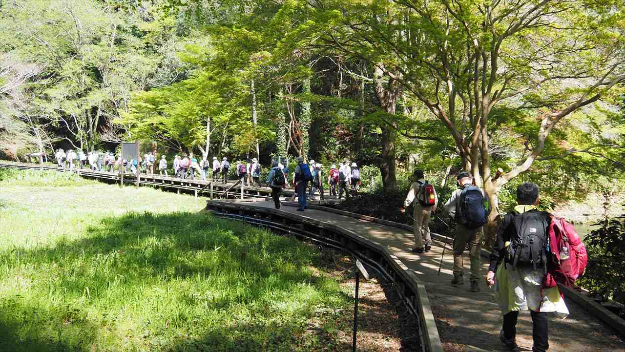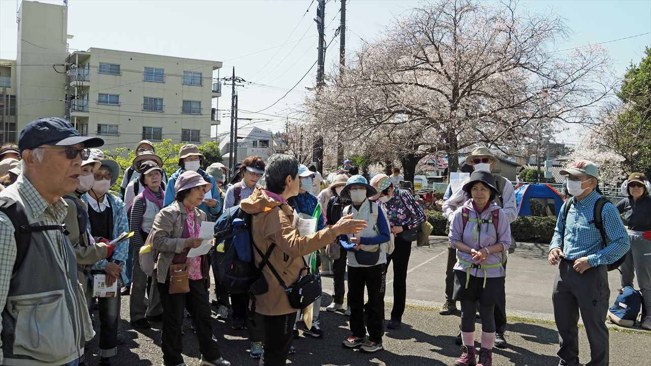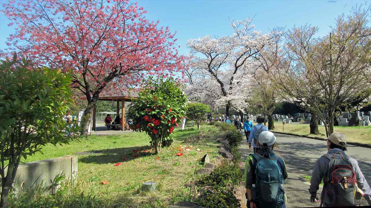 東高根森林公園では、もみじの新緑や春の野草の花が見られた。緑ヶ丘霊園は桜の名所で、数百本の桜が植えられていて見事な桜並木です。会員の皆様と桜三昧の楽しい花見山行でした。参加有難うございます。 松木 千恵子