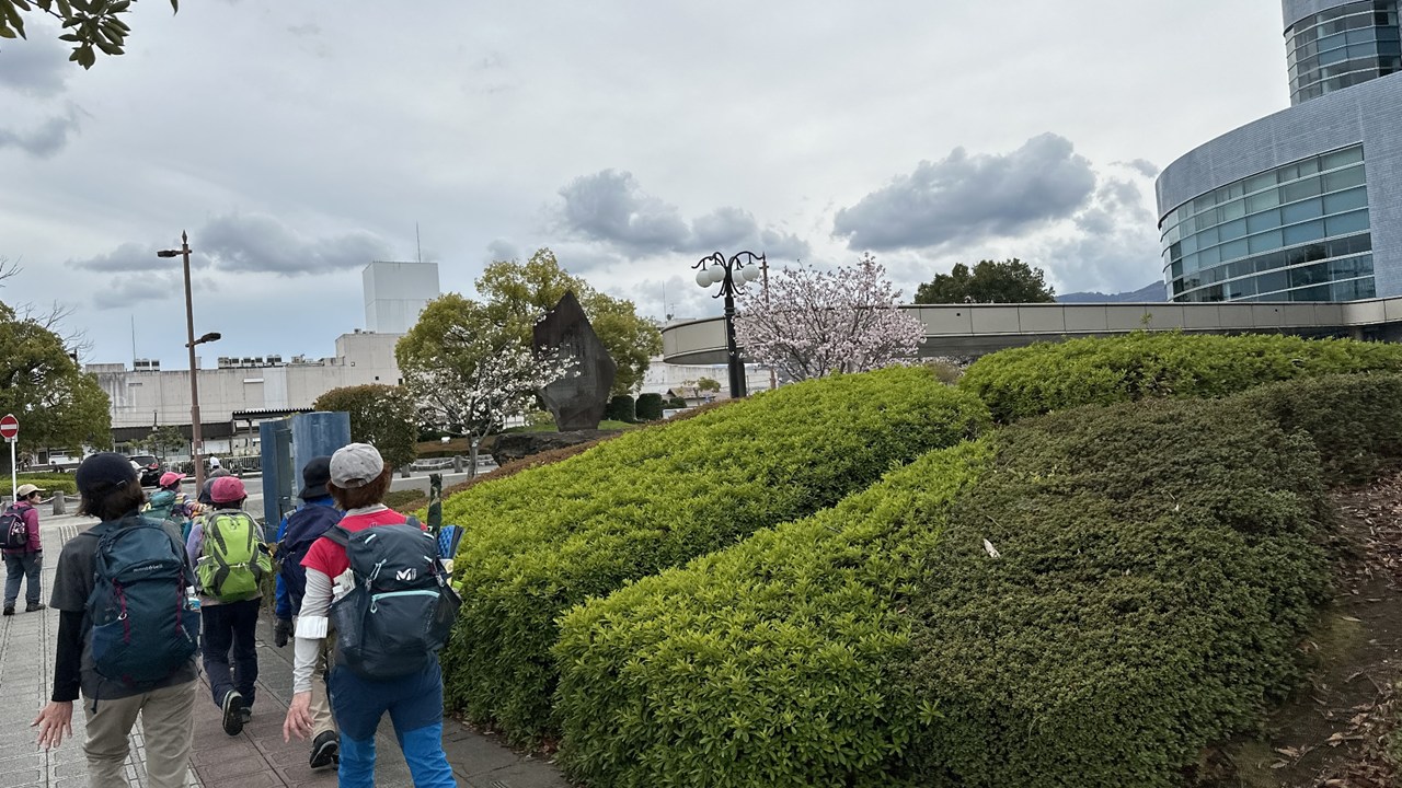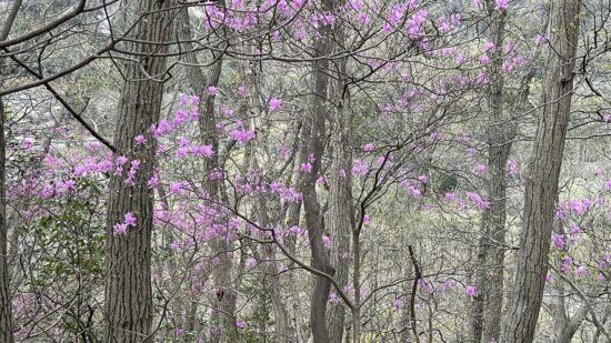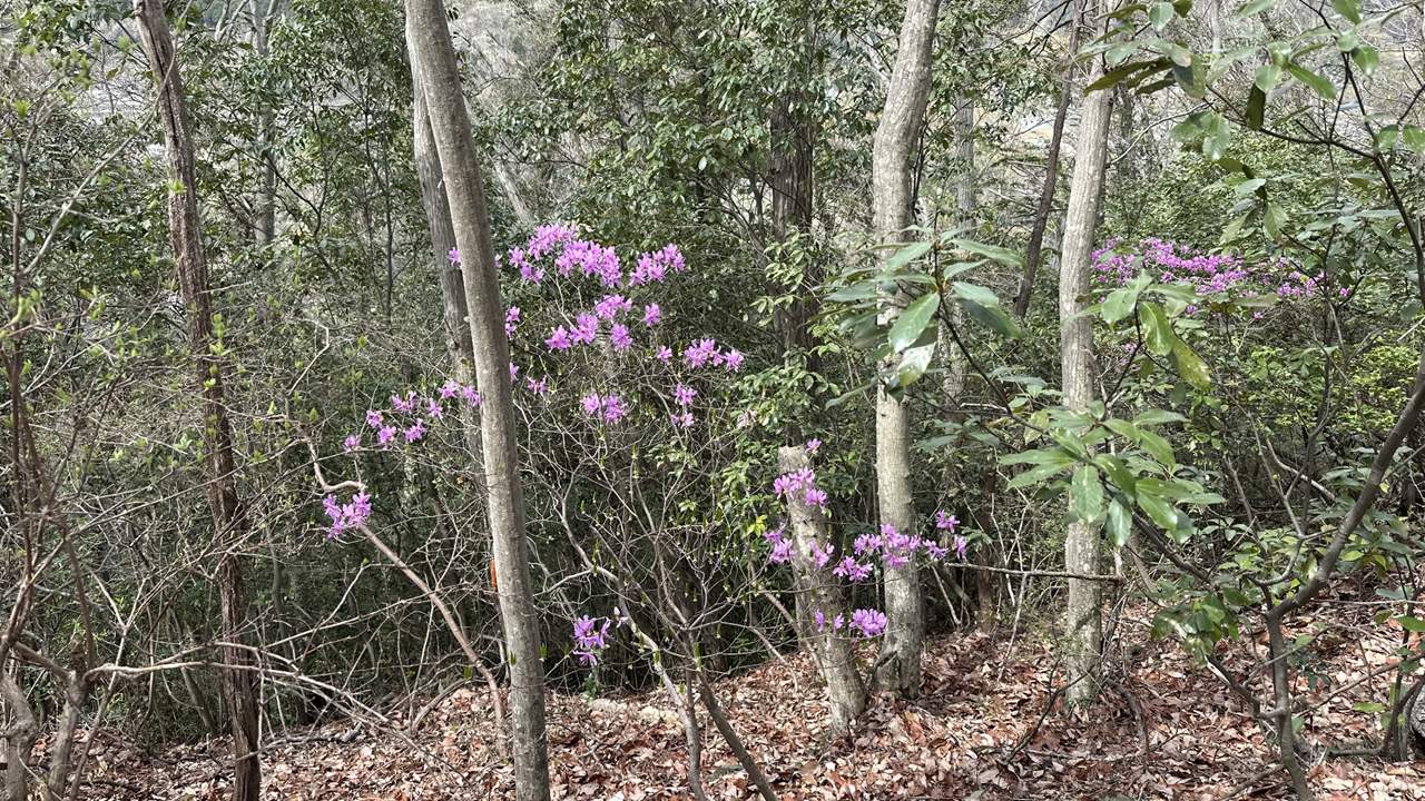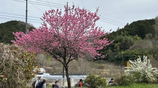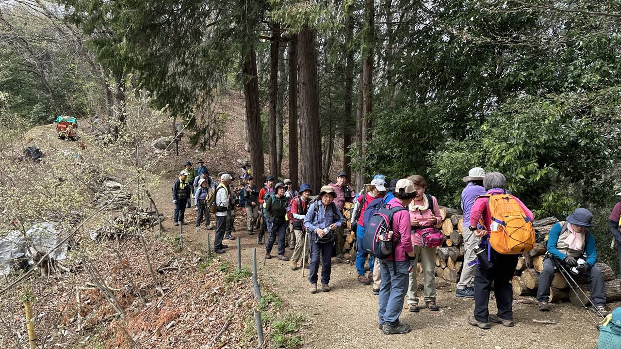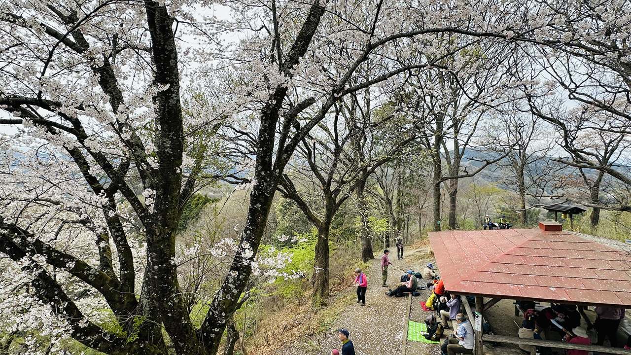 目的のミツバツツジも随所に見られ、参加された皆様にも大変満足していただけたようです。山頂では桜が満開で、桜吹雪の中でのランチは風情があり、とても印象的でした。