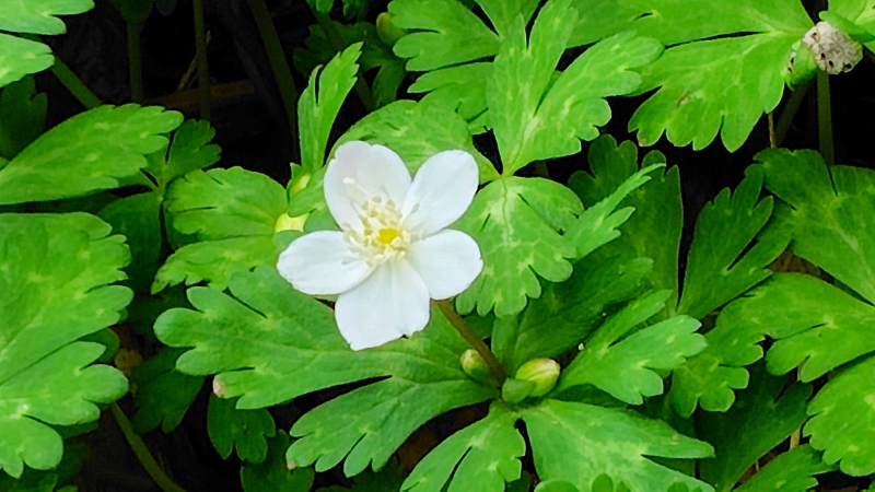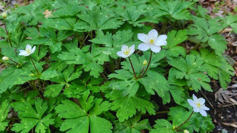 ニリンソウという和名は、一つの茎に二輪ずつ花をつけることが語源になっていますが、1輪3輪のこともあります。花言葉は「友情」「協力」「ずっと離れない」