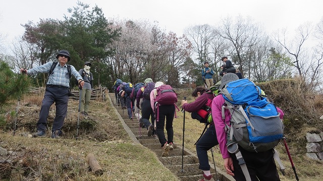 「火床」で休憩して「大文字山」へ向かうが階段は急だ。