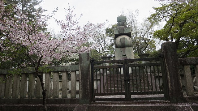 豊臣秀吉が眠る「阿弥陀ヶ峰」の山頂「豊国廟」。遺命によってこの地に葬られた…とありました。この「五輪の石塔」まで新日吉神社から真っ直ぐに石段の参道がありましたが、我々は山道(南)を歩きました。