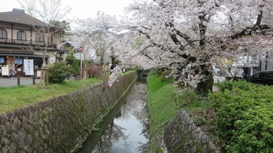 疎水を「銀閣寺」方面(東)へ向かう。桜は満開そして(外国人)観光客は押し寄せて大変な賑わいです。