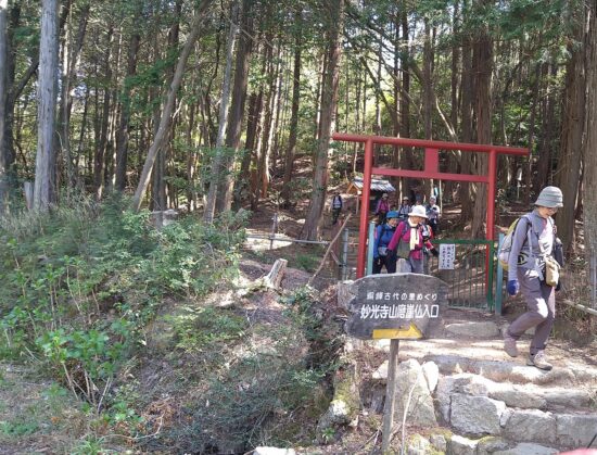 御上神社バス停で下車し、境内を抜けて登山口に向かいます。