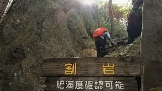 急斜面の割岩が現れました。しっかりホールドして登って行きます。