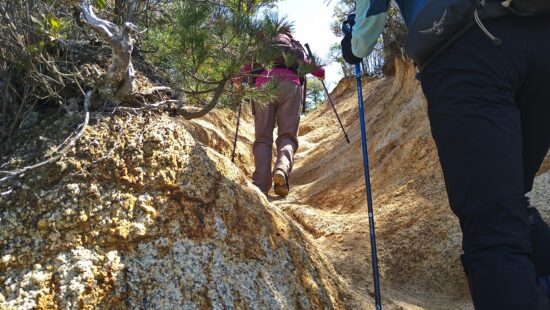分岐に戻り、稜線を目指すと岩質が変わり、花崗岩のザレた登りになりました。