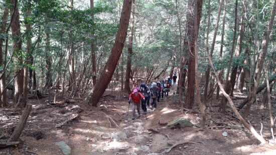 三上山428mに上がりました。まさに御神体の厳しい登りでした。