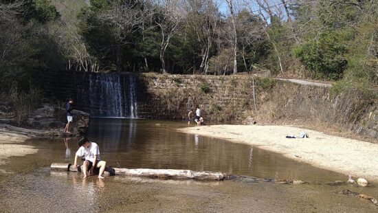 名神トンネルを抜けるとオランダ堰堤が現れます。明治22年にオランダ技師の技術指導で作られた日本最古の堰堤です。地元の子供たちが堰堤から飛び込んで遊んでいます。