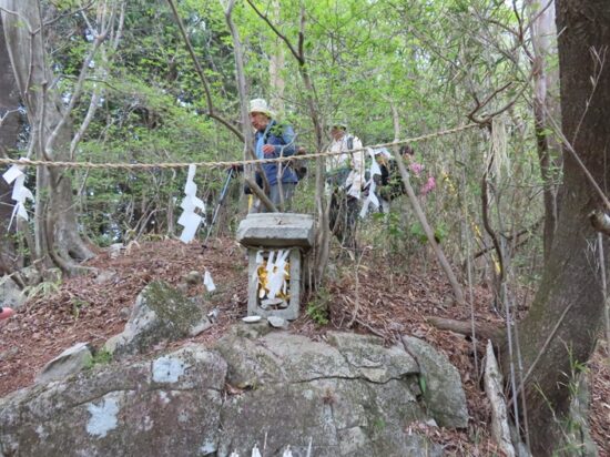 今年は花が早く登山道のニリンソウはほぼ終わっていたのですが、山頂付近の神社の前のニリンソウの群生は、うれしいことにちょうど満開でした