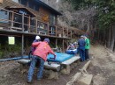 【帰り、花立山荘に於いて、足つりの対処方について学ぶ、】好日山荘HPガイドコラム28