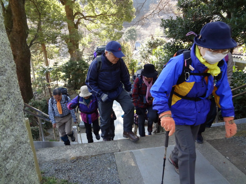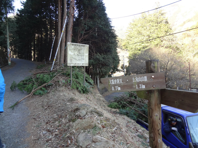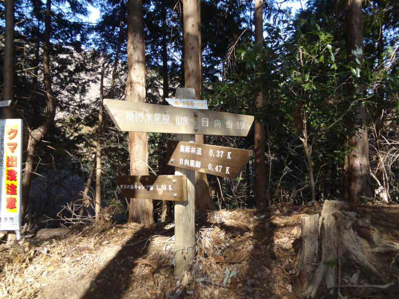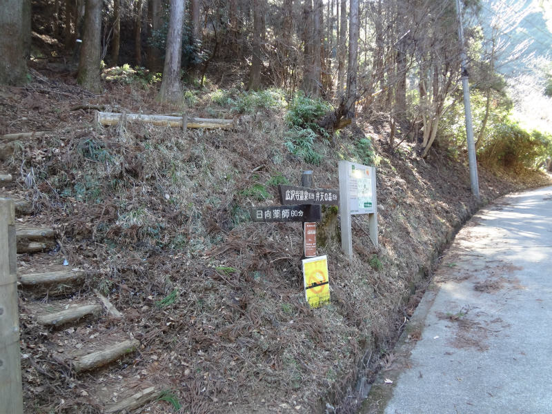 広沢寺温泉入口バス停9:56→広沢寺分岐10:05→大釜弁才天入口11:00→大釜弁才天→七曲峠入口11:09→日向山山頂11:40→梅の木尾根分岐11:58→日向薬師12:15→日向薬師バス停解散13:33時頃=本厚木駅実働2:30歩程7キロ