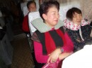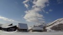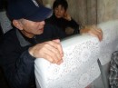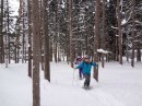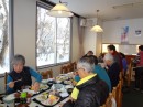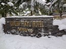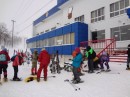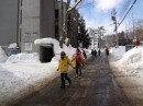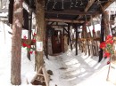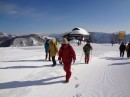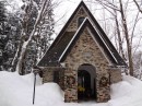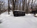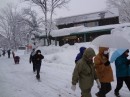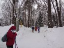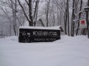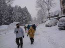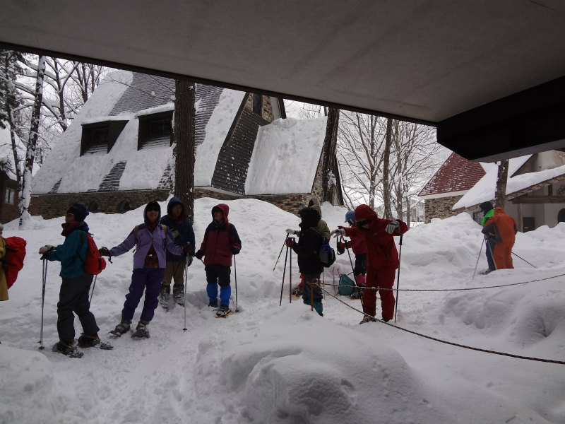 和田野の森教会の前スノーシュー装着ロッジの親父さんに手伝ってもらう9:36