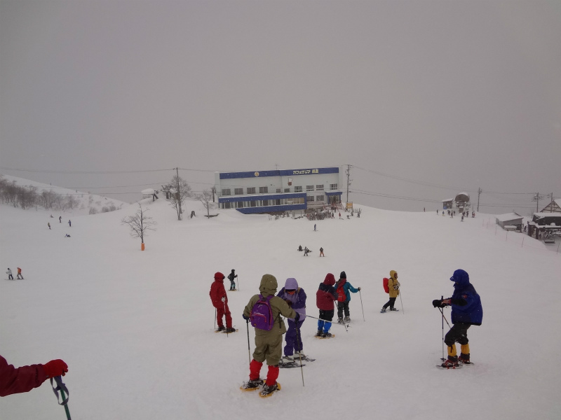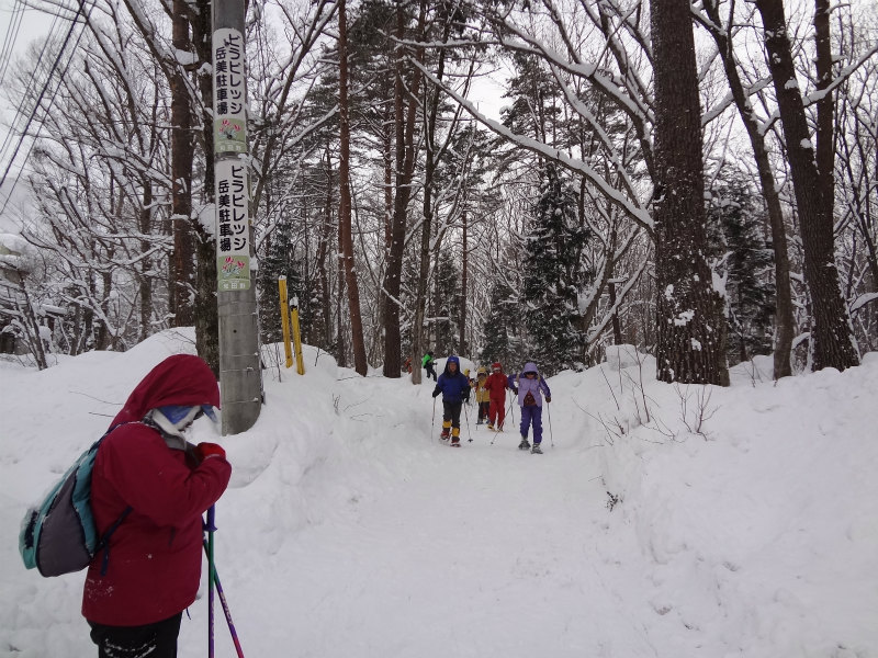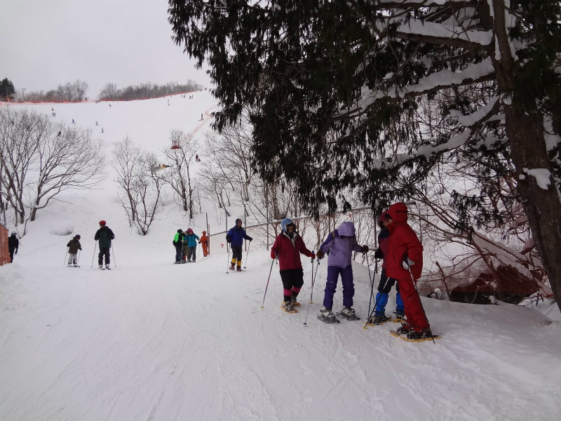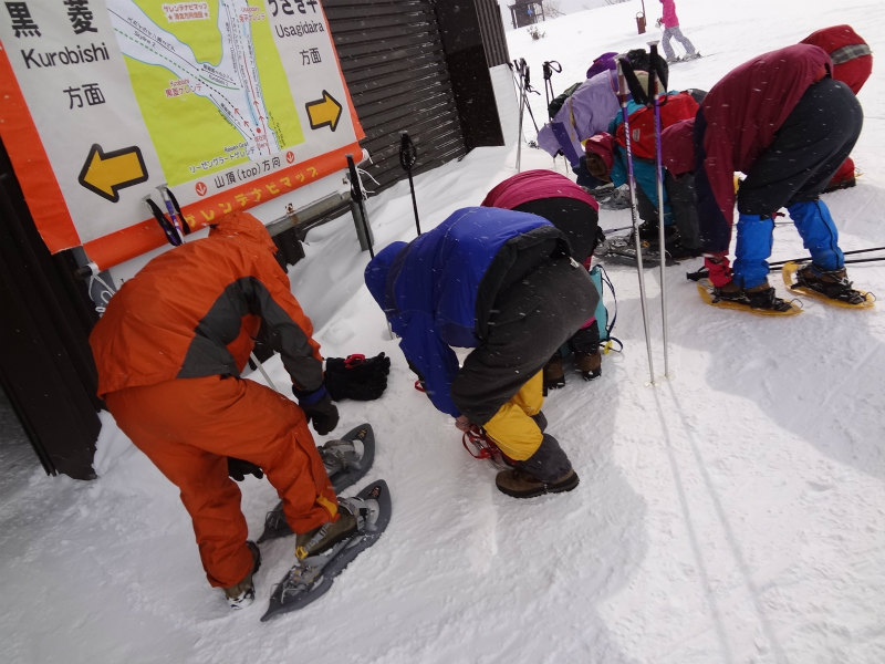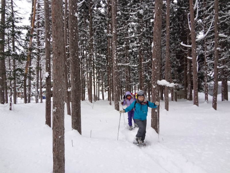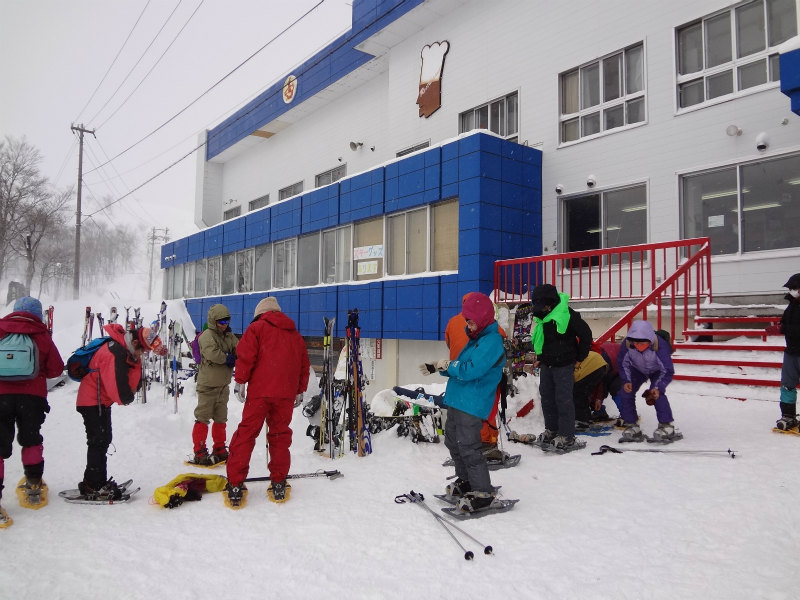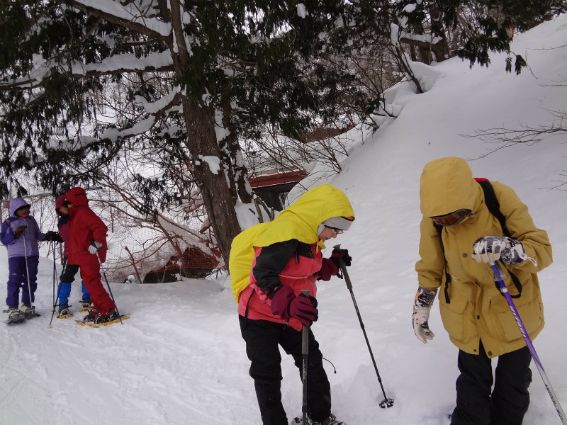 準備:雪の中です、寒さ対策はしっかり。スノーシュー歩きですが、道歩きにアイゼンが必要です。サブザックがあれば便利。荷物は宿に置きます。