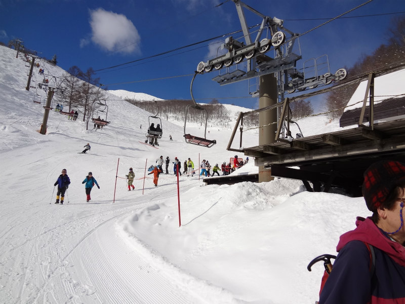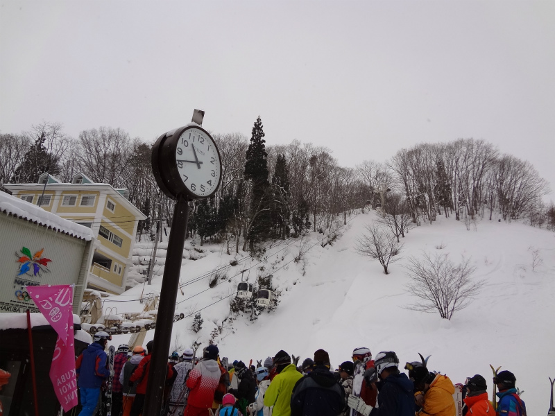 ゴンドラを待つスキーヤー・スノーボーダー歩くのは.東ハイのみ10:42
