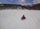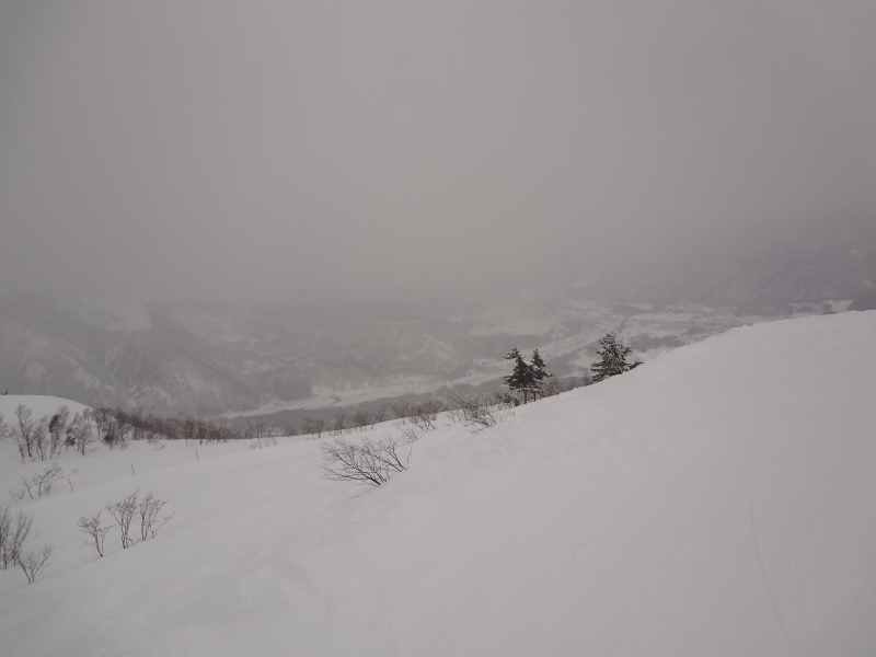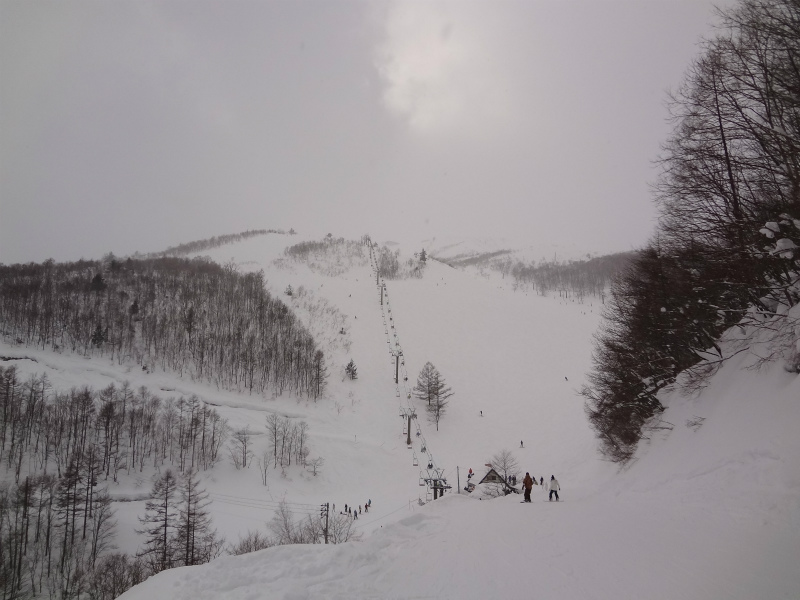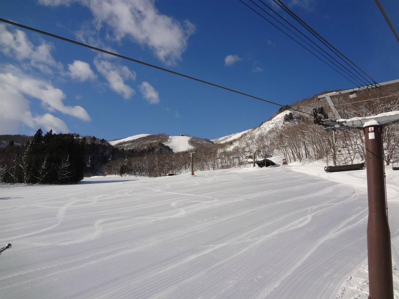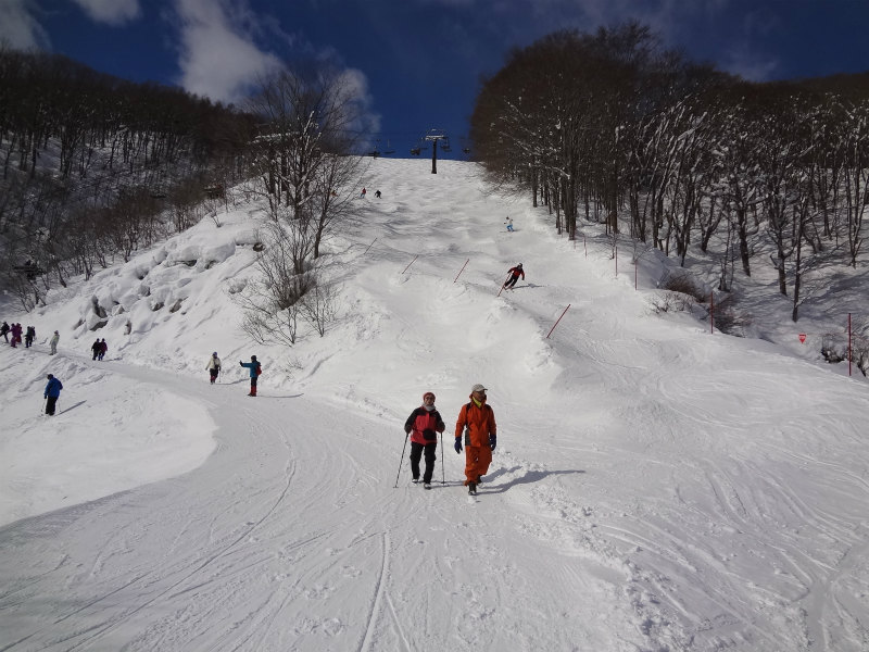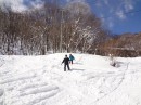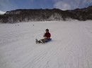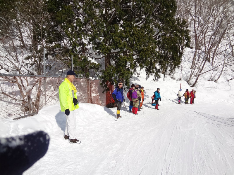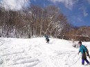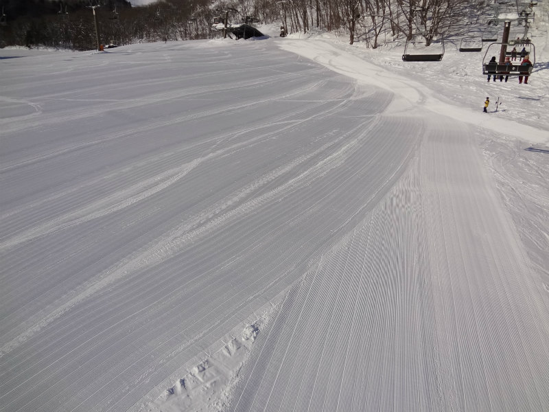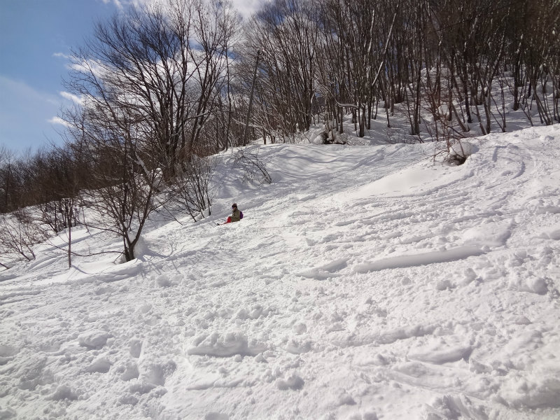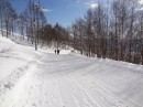 スカイライン第2ペアリフト松永リーダーが滑り降りてきて会う9:29