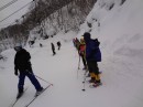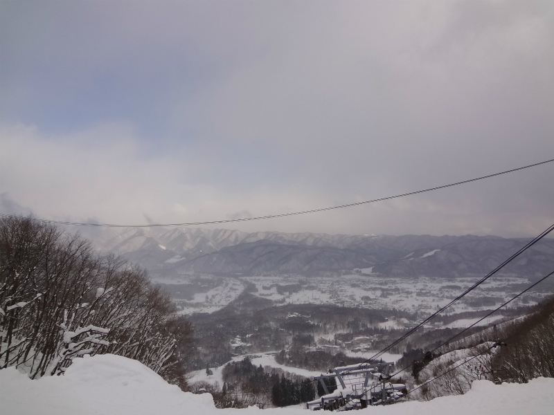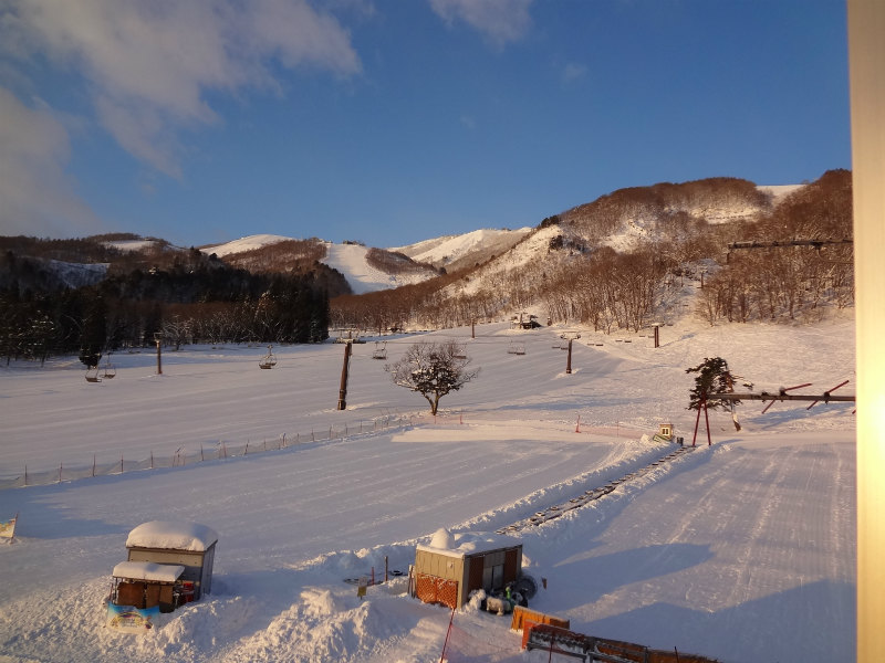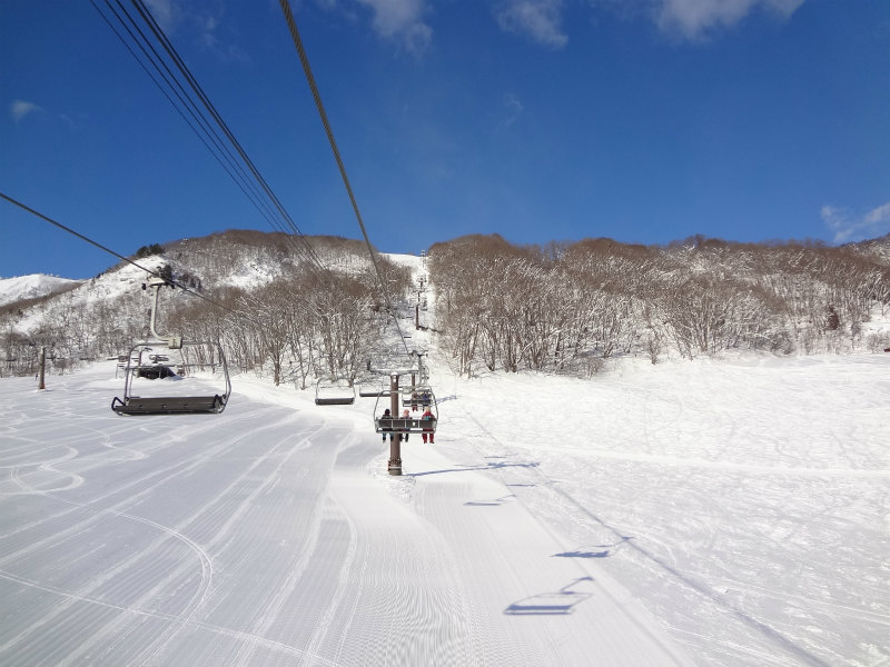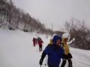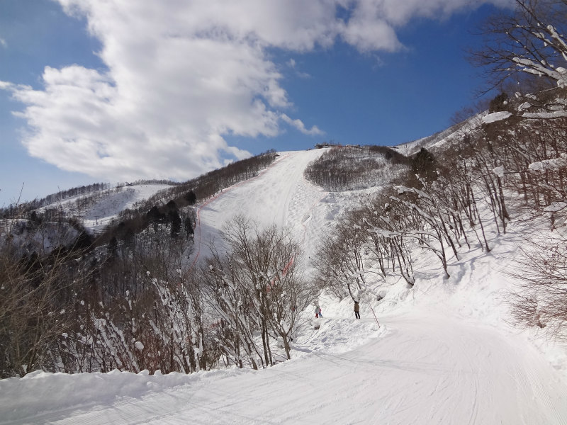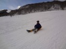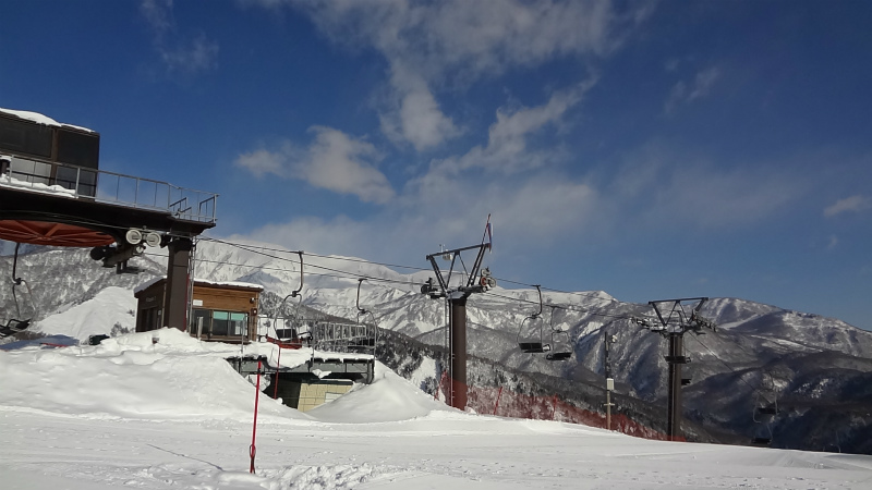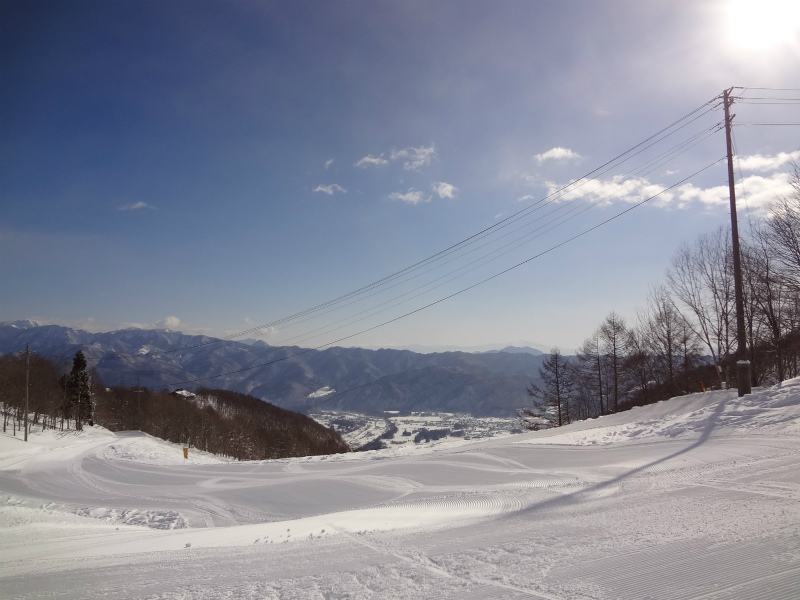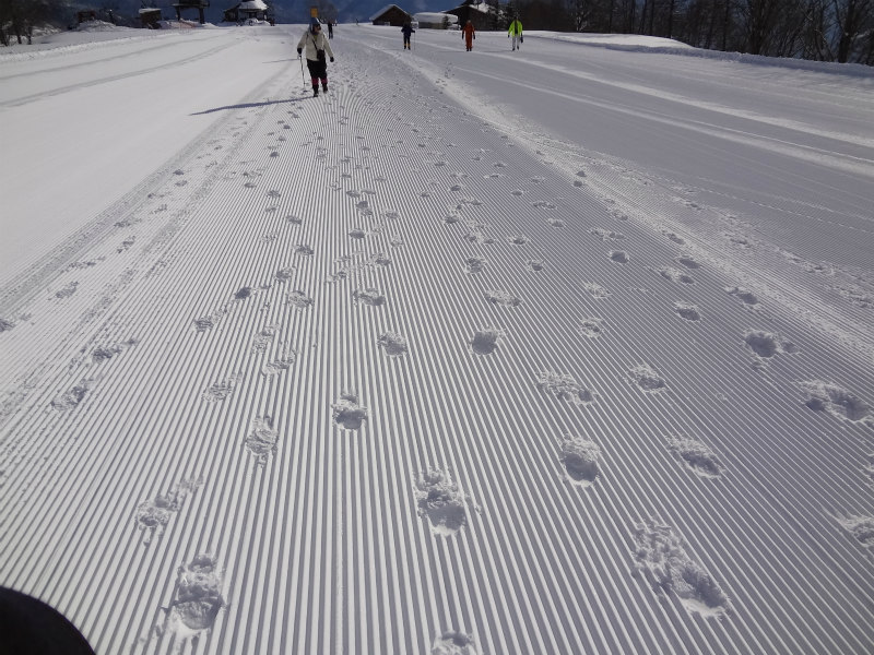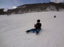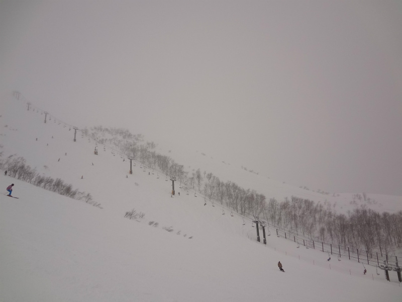 スカイライン第2ペアリフト松永リーダーが滑り降りてきて会う9:29
