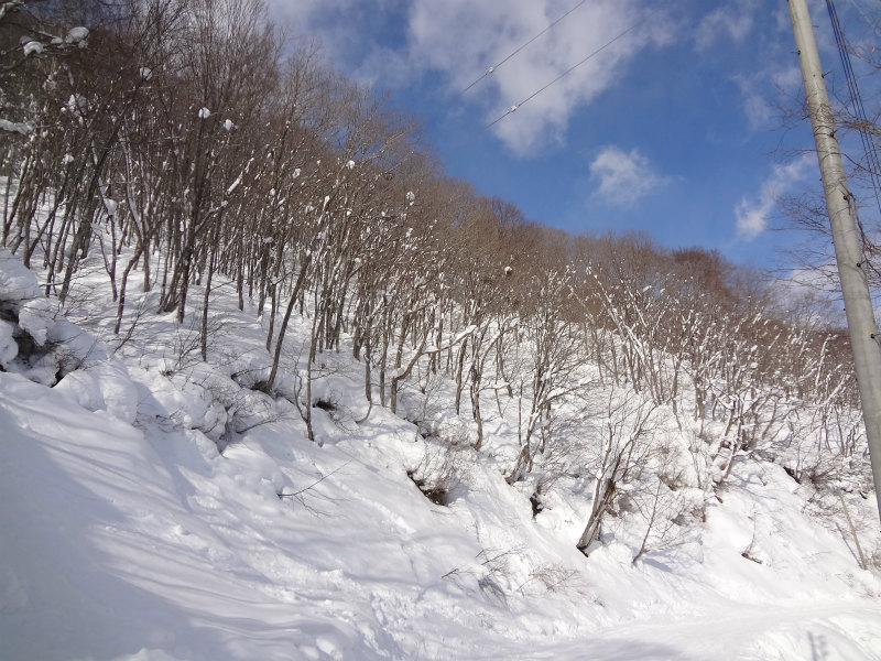 昨日、スノーシューで苦戦した黒菱林道を登山靴で楽々と快適に下る9:22