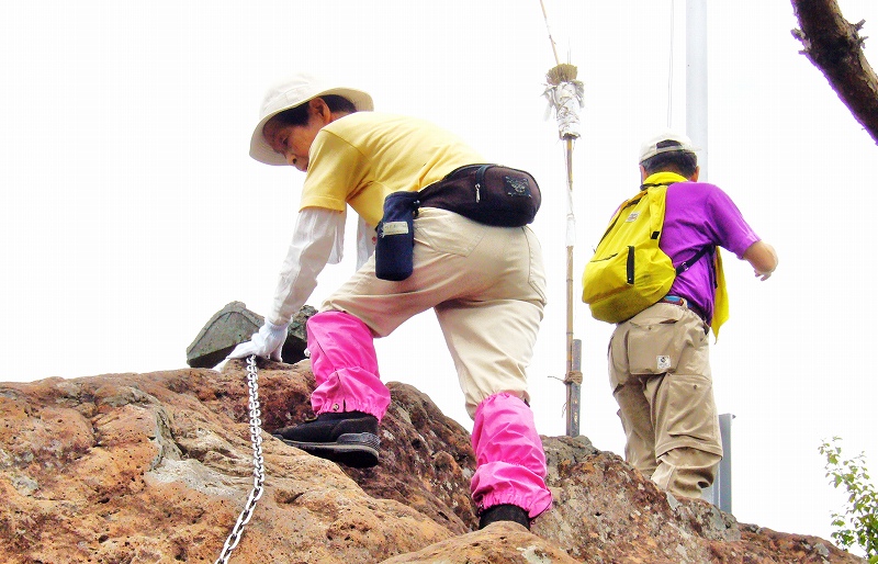 頂上岩のH.K. 頂上岩から降りるM.I. 山頂3等三角点