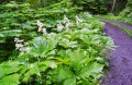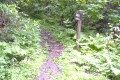 サンカヨウの実を付けた大きな葉ばかり見られた。 地形図にある道との合流地点の道標に