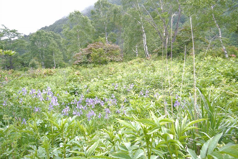 ヒヨドリバナ、クガイソウ、アザミ、アヤメなどのお花畑になっている。すぐ樹林帯に入り、